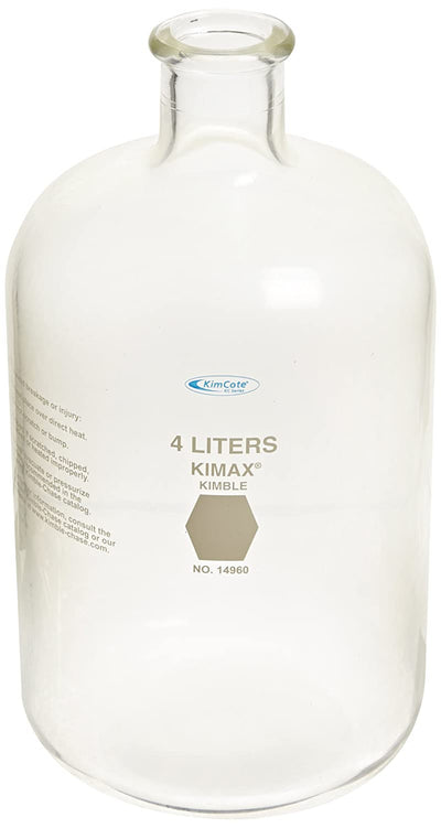Frasco para almacenaje de suero y soluciones en vidrio de borosilicato, es ideal para el almacenaje de líquidos en condiciones de uso rudo. De construcción resistente con paredes reforzadas, hombros redondos, cuello estrecho para utilizar tapón del No. 8.